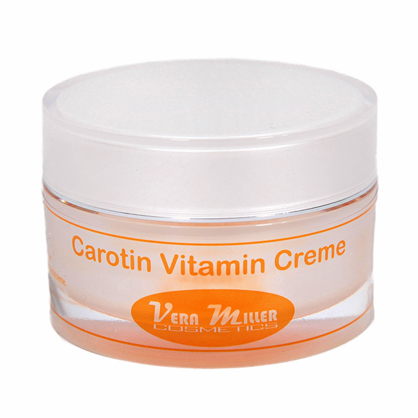 A biological vitamin cream with pure carotene oil, avocado oil, shea butter, vitamins and a moisturising factor. This vitamin cream is especially suitable for very dry, dehydrated and sensitive skin. Pale skin immediately gets a healthy, fresh and slightly tanned look, for tanned skin it will significantly enhance tanning. Immediately after applying our Carotin Vitamin Cream, the skin will become velvety soft, smooth and elastic. Depending on your skin type and condition, our Carotin Vitamin Cream is suitable as day and night cream. During the cold season it is a very protective cream against cold and wet weather conditions.